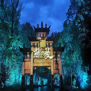 《劍門(mén)長(zhǎng)歌》以天然崖壁為幕,將劍門(mén)“天險(xiǎn)”獨(dú)一無(wú)二的崖壁與絢麗的燈光科技融合,借助全息投影、聲效互動(dòng)等科技手段以及綜合利用戲劇、舞蹈、音樂(lè)等藝術(shù)形式,再結(jié)合大型通關(guān)互動(dòng)游戲的植入,讓游客在行進(jìn)觀演中體驗(yàn)戶(hù)外真人“通關(guān)”游戲的趣味沉浸以及全感官的沉浸式體驗(yàn)。